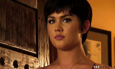 Tgirl Gracie Jane agrees to fuck boss tatted stepdaughter