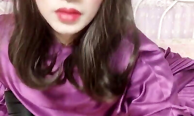 A CD try on sexy red open crotch panties and shining red stocking (SisK undergarments collection EP1.1)